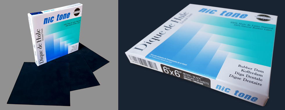Nic Tone rubber dam Professional Latex sheet for operatory area Isolates from one single tooth to entire dental arch of operatory area and allows ample vision due to its contrasting color preventing cross contamination and preventing dental materials and instruments from falling into the oral cavity.