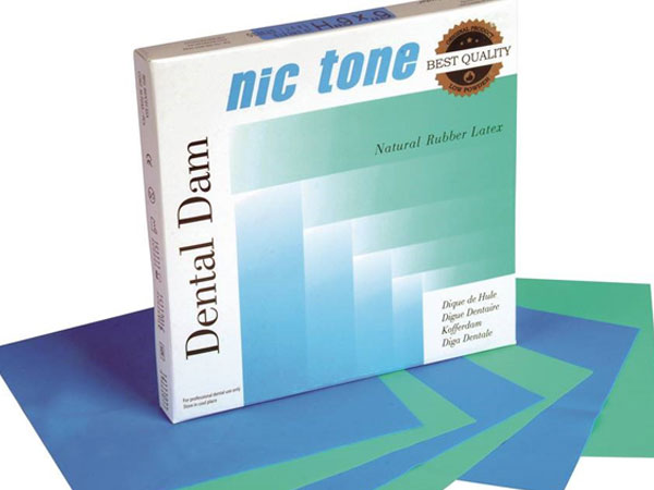 Nic Tone rubber dam Professional Latex sheet for operatory area Isolates from one single tooth to entire dental arch of operatory area and allows ample vision due to its contrasting color preventing cross contamination and preventing dental materials and instruments from falling into the oral cavity.